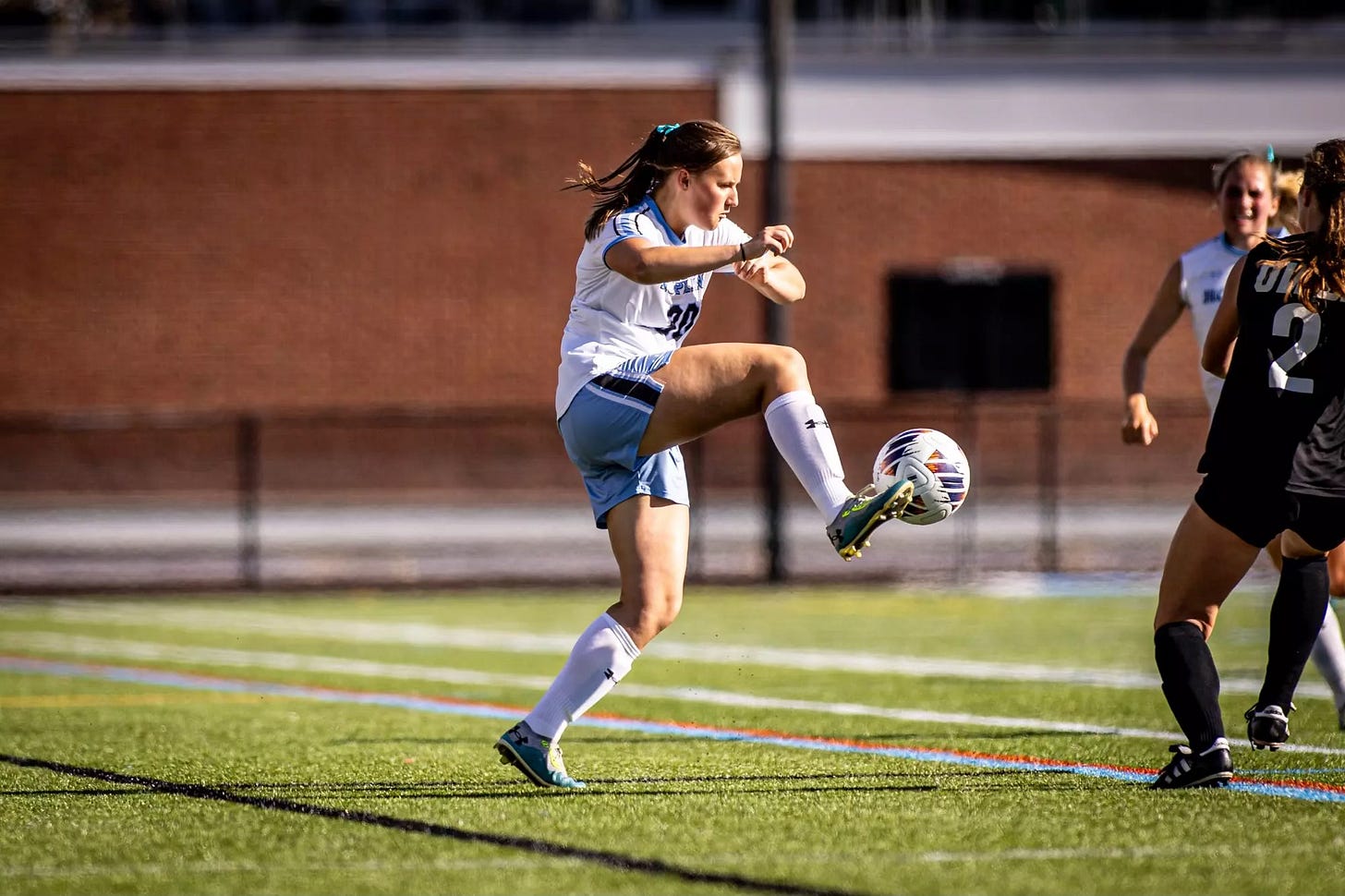 The whistle blew at my daughter’s soccer game. She got the ball.